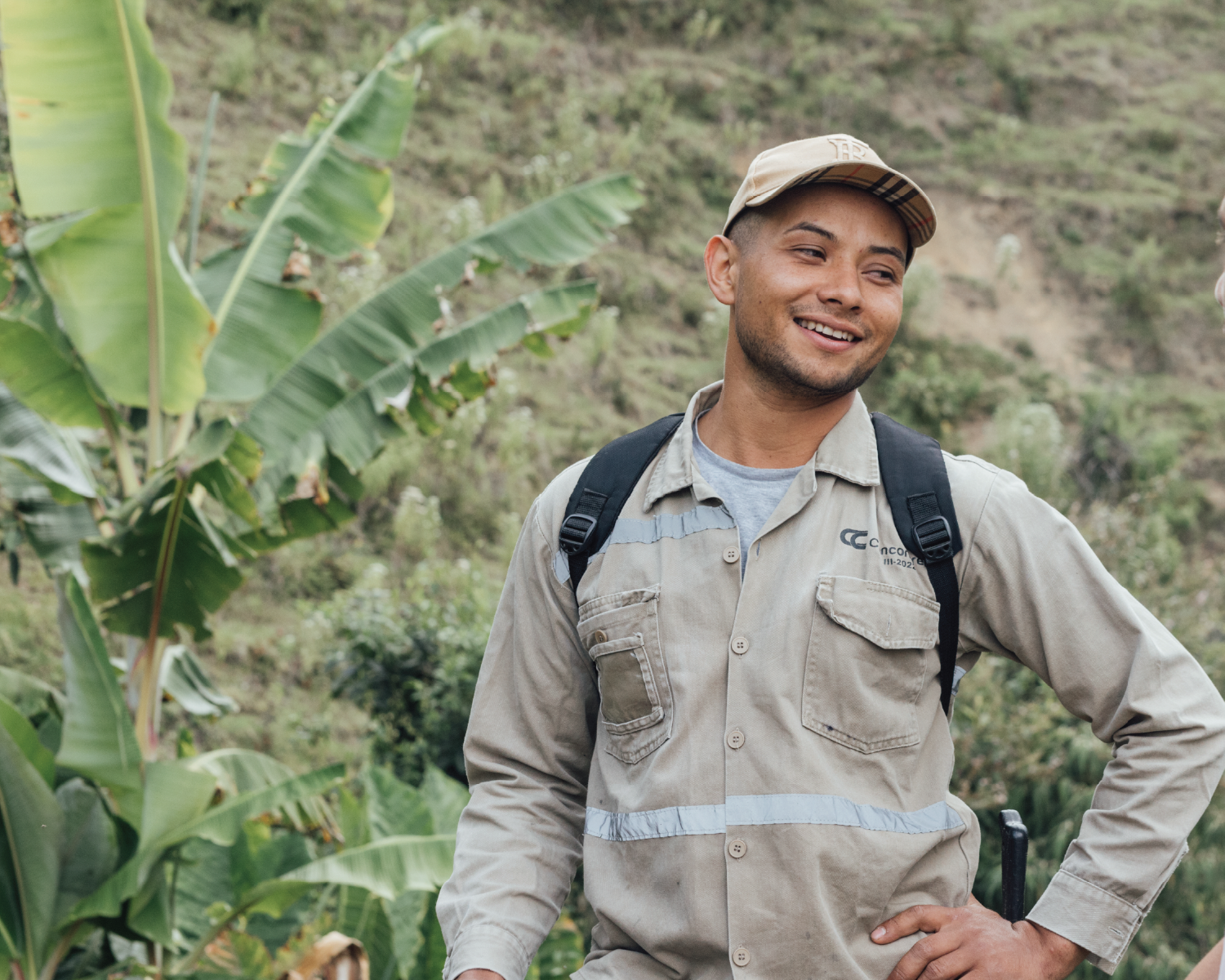 "Sergio Caro, now 28, was the only one of his six siblings to stay in Caicedo. While the rest left for the city, Sergio stayed to work his grandmother's farm. He went on to earn a technical degree in Agricultural Management and manage quality for Cooperativa de Caficultores de Salgar, learned about green grading, joined the PEC training program through FNC and learned to cup. In 2019, he planted his own small plot of land on his family's farm—just 3,500 trees—with seeds originally from Carmen Montoya in Urrao.