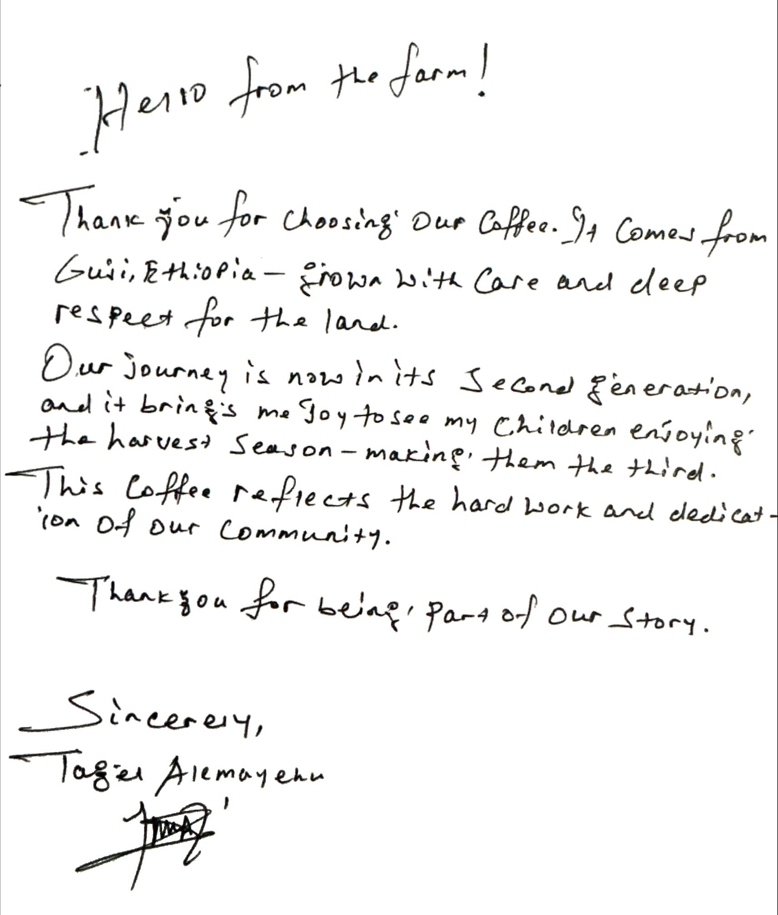 "While we weren't able to buy coffee from Tagel that year, we asked that he'd stay in touch—and to please let us know if he planned to make washed coffee at his station in Hambela.